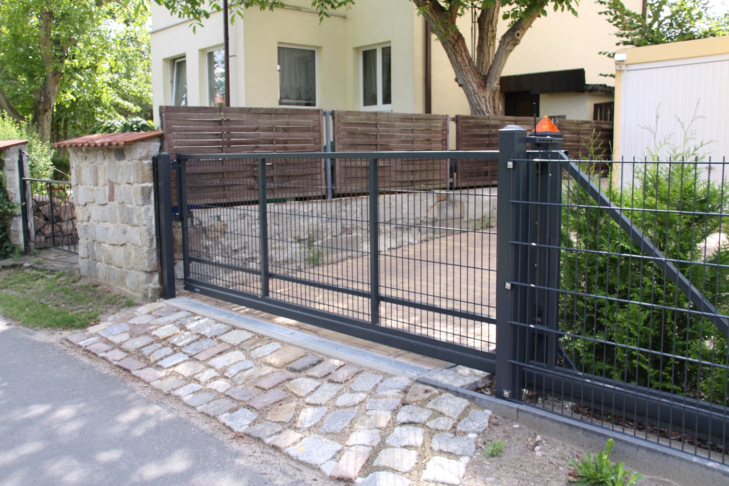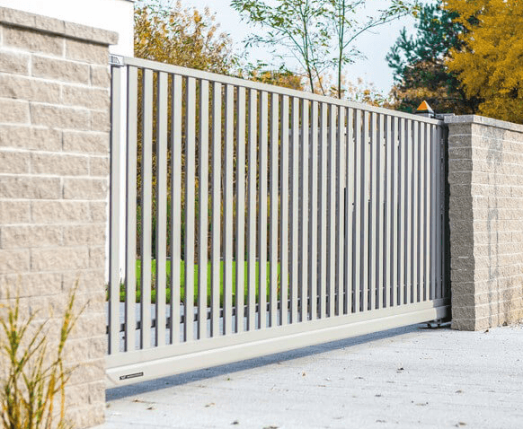 Sie können sämtliche Schiebetore in manueller Ausführung oder mit einem elektrischen Antrieb bestellen, der in einem Pfosten untergebracht ist, wobei letzterer mit einer Fernbedienung angesteuert werden kann und dadurch deutlich mehr Komfort bietet. Den wartungsfreien Antrieb gibt es in den Versionen PRO und PRO-FAST. Für die Funksteuerung liefern wir zwei Handsender gleich mit. Der PRO-FAST-Antrieb verfügt über ein verstärktes Getriebe und öffnet bzw. schließt das Schiebetor rund 20 % schneller als der PRO-Antrieb. Auf die leistungsstarken Motoren gewähren wir eine Garantie von fünf Jahren.