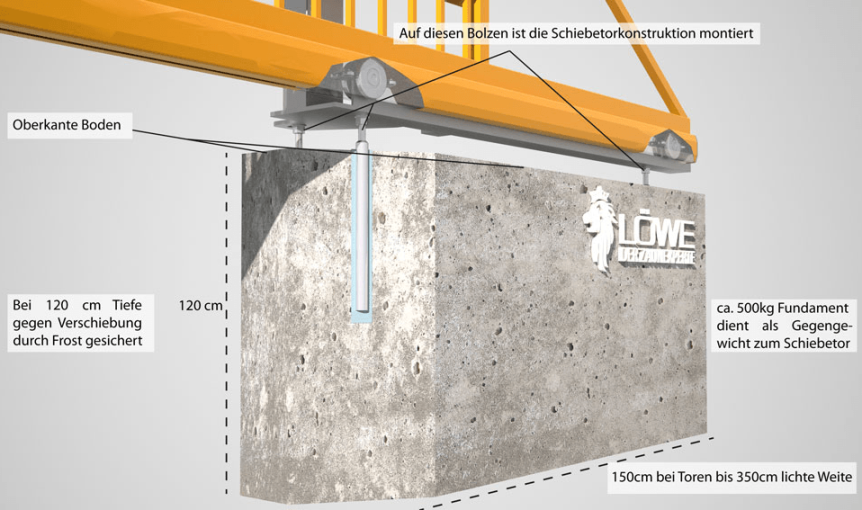 Unsere Schiebetore sind so konstruiert, dass sie eine möglichst einfache Montage ermöglichen. Eine ausführliche Anleitung dazu finden Sie auf unter Downloads. Dort wird beschrieben, wie Sie ein Fundament anzulegen haben, wie das Tor aufgesetzt und fixiert werden muss und auf welche Weise die elektrischen Anschlüsse zu verlegen sind. Um dies anschaulich zu machen, stellen wir Ihnen zahlreiche Fotos und für jeden Arbeitsschritt eine PDF-Datei mit aussagekräftigen Konstruktionszeichnungen zur Verfügung.