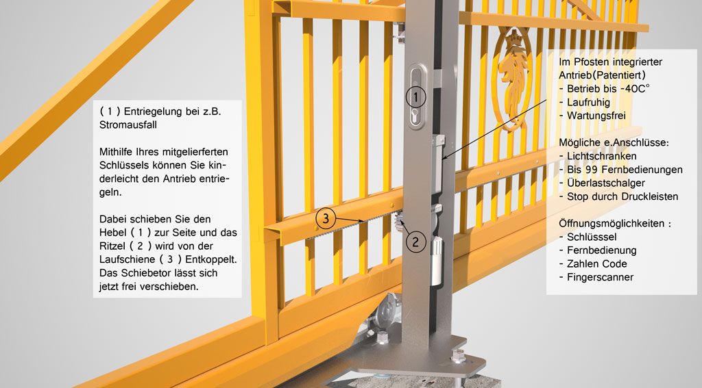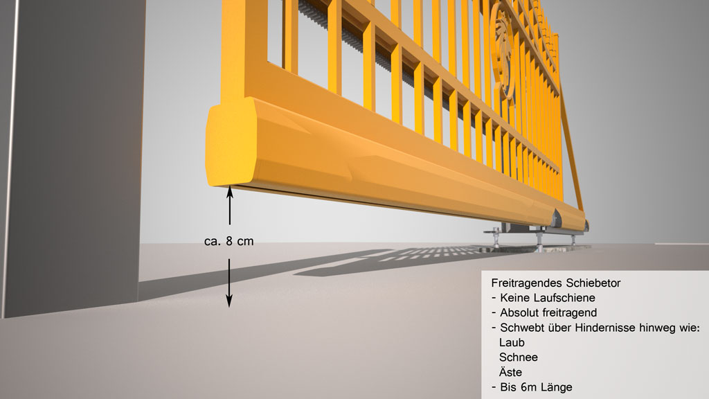 Der Schiebetorflügel bewegt sich 8-12 Zentimeter über dem Untergrund.