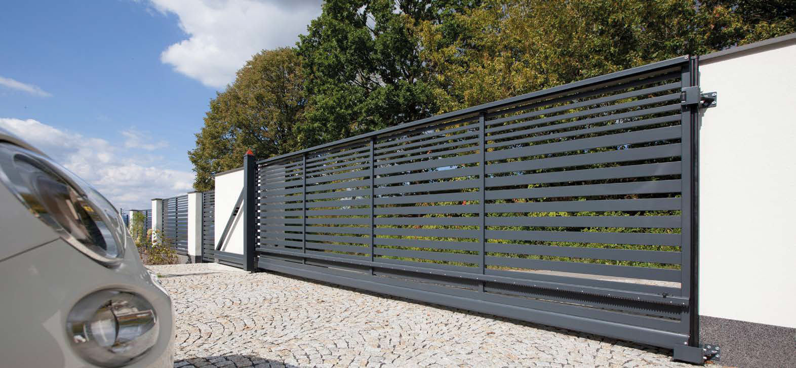 Freitragende Schiebetore sind eine elegante Lösung, denn sie erlauben durch das seitliche Verfahren zum einen komplett freie Ein- und Ausfahrten auf Ihrem Gelände. Zum anderen verlaufen sie rund acht Zentimeter über dem Boden und kommen deshalb ohne Bodenschiene aus, so dass keine Reinigung von Schmutz und Laub sowie eine Entfernung von Schnee und Eis im Winter nötig ist.